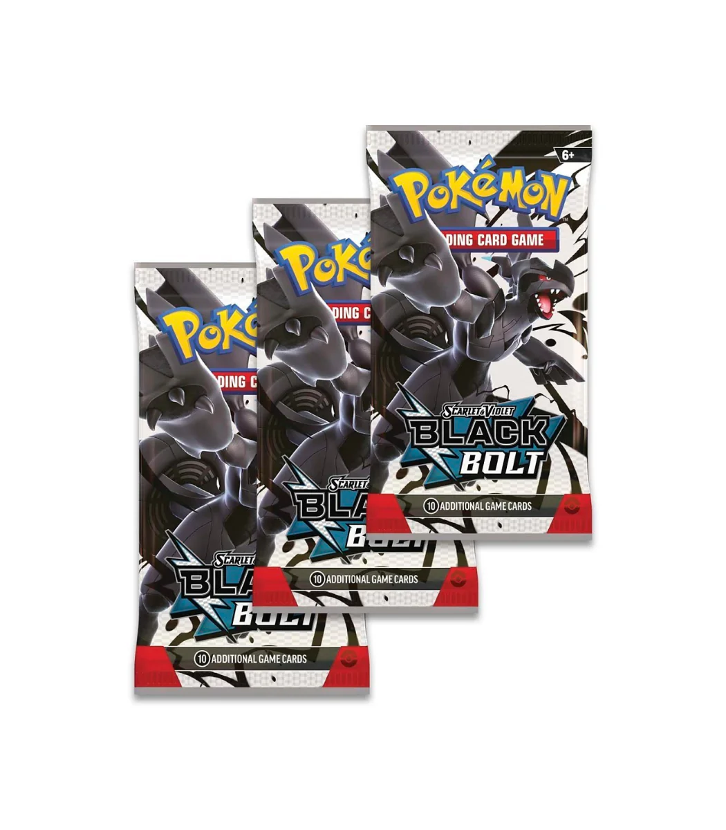 - Each booster pack contains 10 cards and 1 Basic Energy from Pokémon TCG: Scarlet & Violet—Black Bolt or White Flare